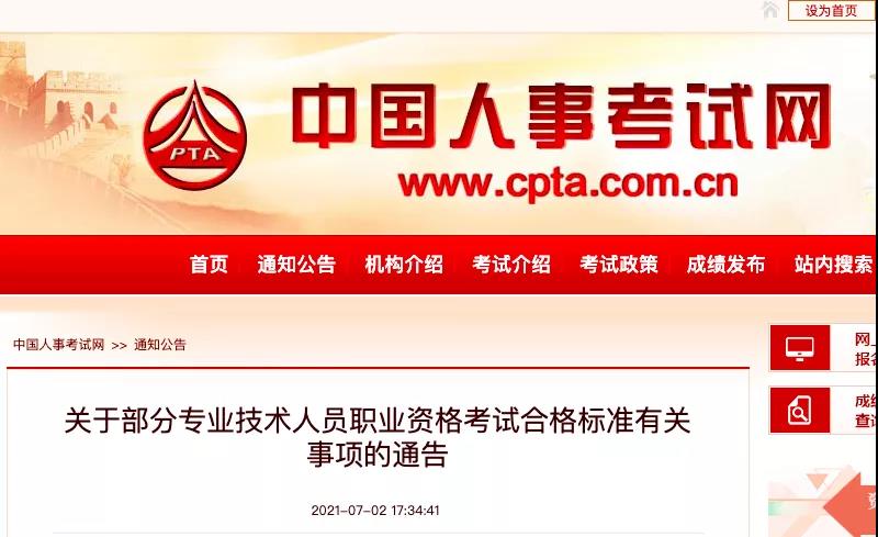 經商有關部門同意,決定自2021年度起,對部分專業技術人員職業資格考試實行相對固定的合格標準。現就有關事項通告如下: